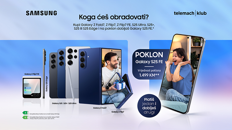 Kupovinom modela Samsung Galaxy S25 Ultra, Samsung Galaxy S25+, Samsung Galaxy S25, Samsung Galaxy S25 Edge, Samsung Galaxy Z Fold7, Samsung Galaxy Z Flip7, Samsung Galaxy Z Flip7 FE uređaja tokom promotivnog perioda, kupci mogu ostvariti pravo na poklon mobitel Samsung Galaxy S25 FE (8 GB/128 GB) u vrijednosti od 1.499,00 KM.