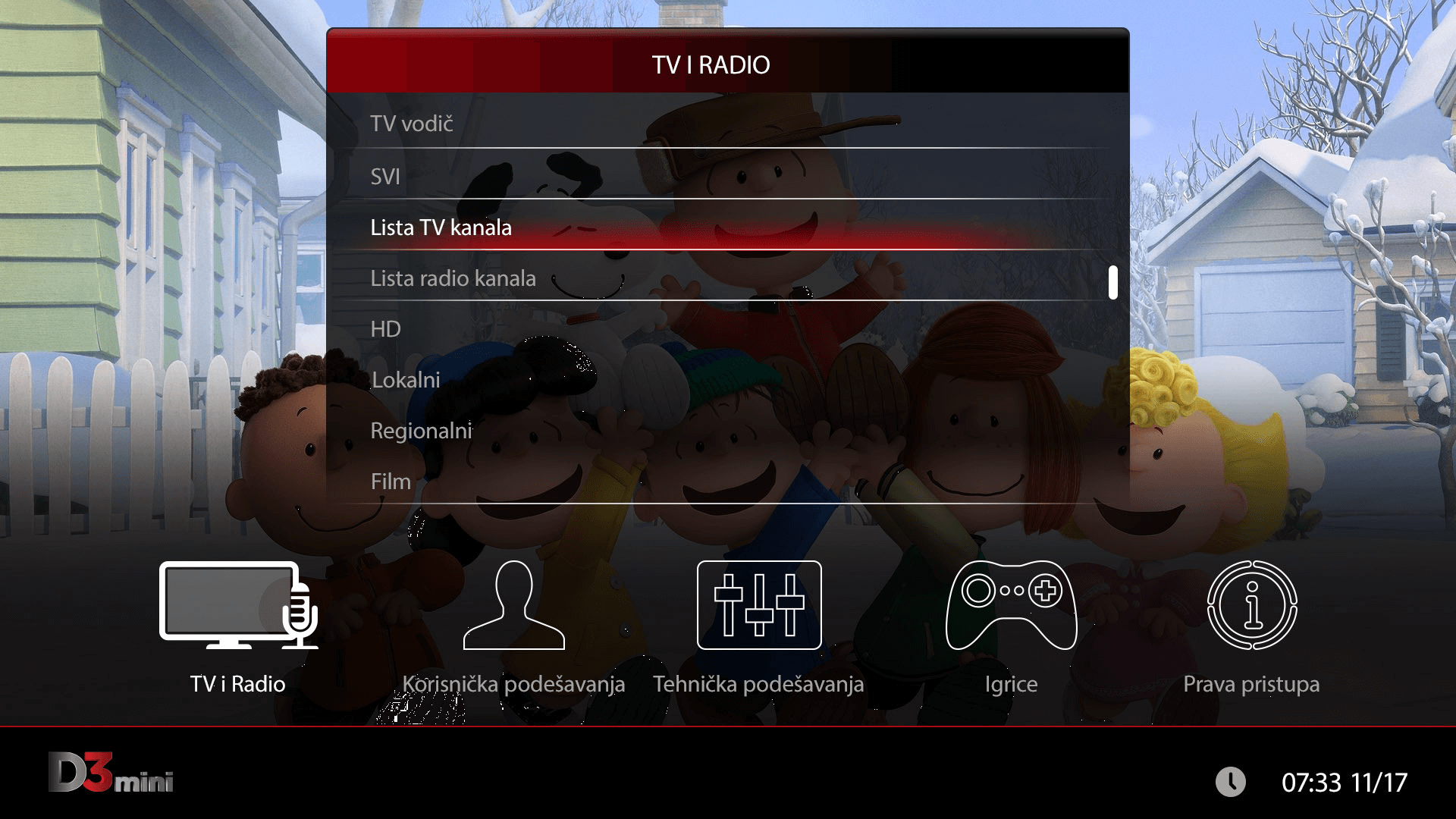 NAPOMENA: Postoje i već definisane liste koje možeš birati u podmeniju TV i Radio.